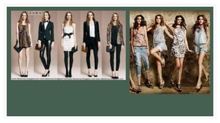 El documento define la moda como tendencias repetitivas en ropa, accesorios y estilos de vida que influyen el comportamiento de las personas. Explica que la moda de ropa se refiere a tendencias masivas que la gente adopta y que se refiere a las costumbres que caracterizan una época o lugar, especialmente en relación al vestir. Proporciona ejemplos de moda pero no los describe.