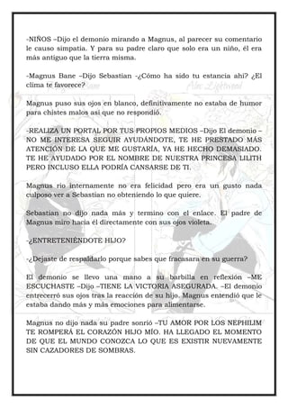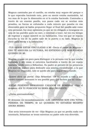 Magnus se encuentra explorando un castillo en otra dimensión, debilitado por su estancia allí. Escucha a su padre, un demonio, hablar con Sebastian, quien busca su ayuda para abrir un portal entre dimensiones y enviar demonios a su mundo. El demonio se niega a ayudar más a Sebastian. Magnus y sus amigos llegan a la nueva dimensión después de usar un hechizo para rastrear a Magnus. Son atacados por demonios pero logran derrotarlos. Continúan su camino pero ven una gran horda de demonios bloque