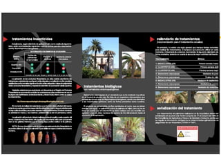 El documento presenta un plan de prevención y control de Rhynchophorus ferrugineus en la Comunidad Valenciana, España. Incluye una lista de focos de la plaga desde 2004, la legislación nacional y autonómica para su control, y las implicaciones de dicha legislación como prohibiciones de entrada de palmeras y requisitos de cuarentena.