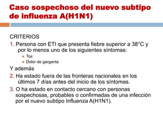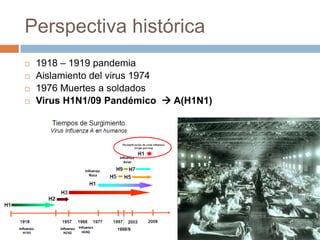 Este documento proporciona un resumen de la evolución de la pandemia de gripe A(H1N1) de 2009 a nivel mundial desde su detección en abril hasta mediados de mayo de 2009. Incluye tablas con el número de países afectados, casos confirmados y fallecidos reportados por la OMS para cada fecha. Muestra el rápido aumento en el número de países, casos y fallecimientos a nivel global a medida que se propagaba la pandemia.