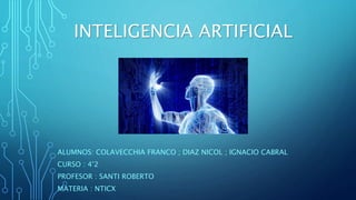 Este documento resume la inteligencia artificial, incluyendo su definición como el desarrollo de sistemas que exhiben características de inteligencia humana como el lenguaje y la resolución de problemas. Explica que John McCarthy acuñó el término y propuso la idea. También describe los tipos principales de IA, sus aplicaciones comunes y si es posible lograr una inteligencia completamente artificial.