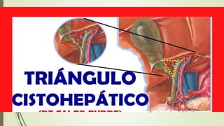 Este documento describe la anatomía, fisiología y enfermedades de la vesícula biliar y los conductos biliares. Explica que la vesícula biliar es un órgano en forma de pera que almacena bilis producida por el hígado, y que la colecistocinina estimula la contracción de la vesícula biliar para vaciar la bilis en la digestión. También describe cómo los cálculos biliares pueden formarse y causar complicaciones como colecistitis aguda o coledocolitiasis. Los exámenes de imagen