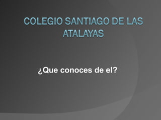El Colegio Santiago de las Atalayas inició en el año 2000 como una pequeña institución en la localidad de Bosa que ha ido creciendo para convertirse en una de las mejores de la zona. Realiza diferentes actividades académicas y recreativas para ayudar a la comunidad estudiantil, como actos culturales, celebraciones familiares, simulaciones de la ONU, izadas de bandera y elecciones del personero estudiantil. También ofrece actividades de refuerzo para los estudiantes de grado 11 antes del examen ICF