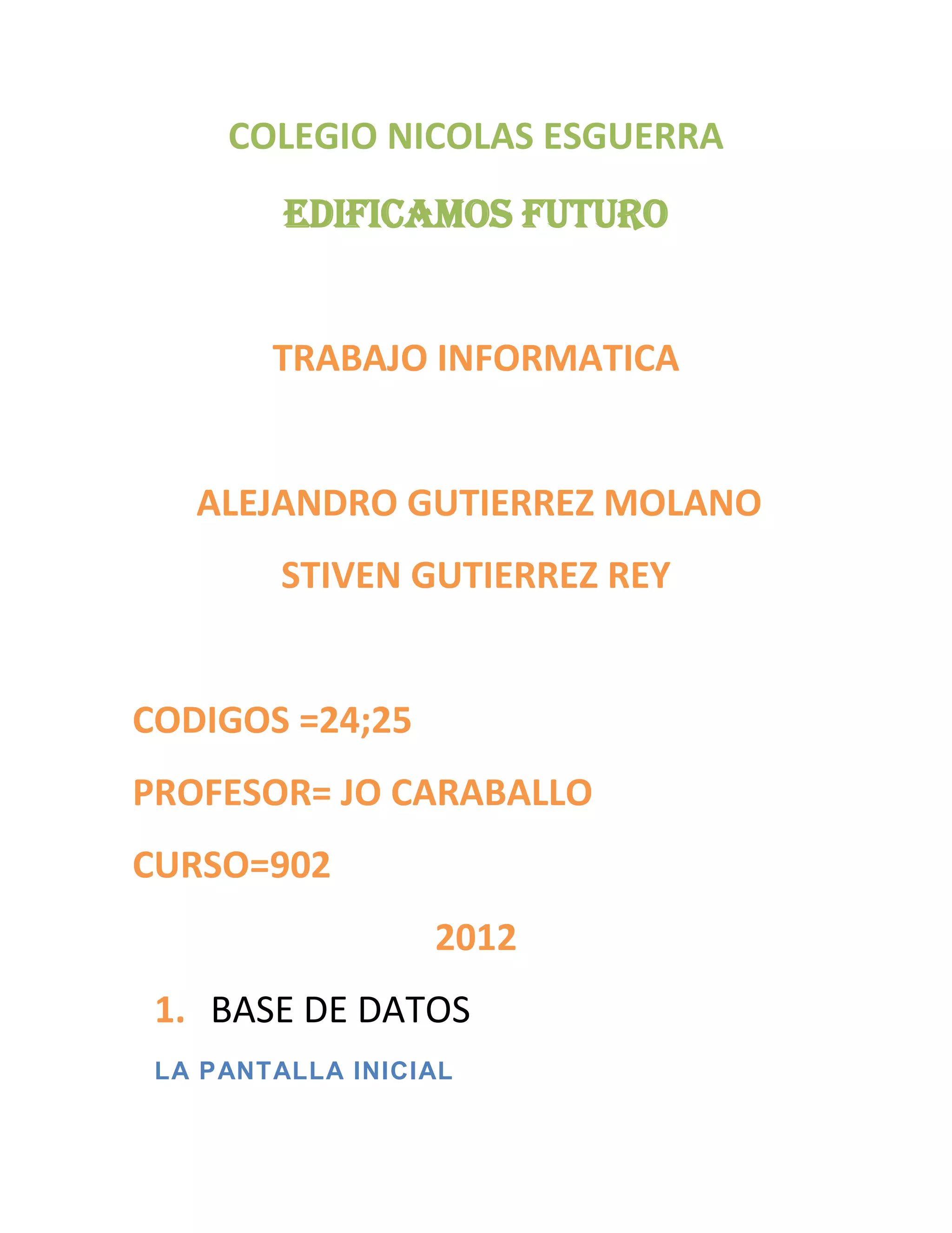 Este documento proporciona instrucciones sobre cómo usar Microsoft Access. Explica los componentes principales de la pantalla inicial como la barra de título y los botones. También describe cómo crear un nuevo documento, modificar tablas existentes a través de la vista de diseño, eliminar registros y buscar y reemplazar datos dentro de las tablas.
