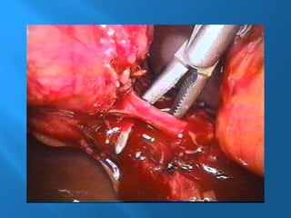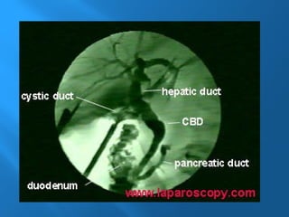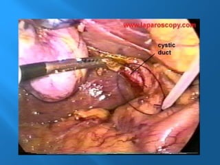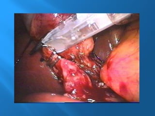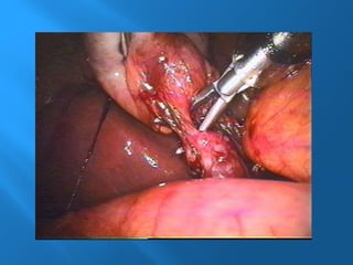 La colecistitis aguda es la inflamación de la vesícula biliar causada por un cálculo en el conducto cístico, inicialmente de origen químico y posteriormente séptico. Se presentan síntomas como dolor epigástrico, anorexia, vómitos y leucocitosis, mientras que el diagnóstico se realiza con ultrasonografía como método estándar. El tratamiento incluye cirugía laparoscópica, donde se realiza la disección y extracción de la vesícula biliar.