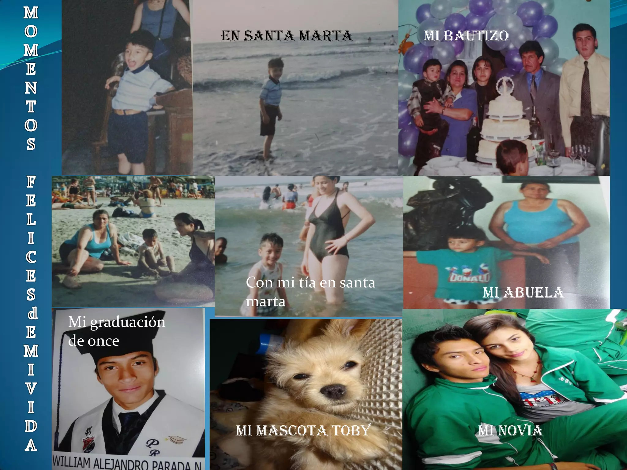 El documento describe varios eventos en la vida del autor, incluyendo un viaje a Santa Marta con su tía, su bautizo, su graduación de once, y su mascota Toby.