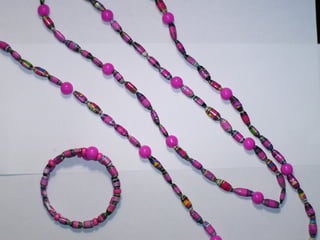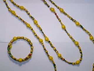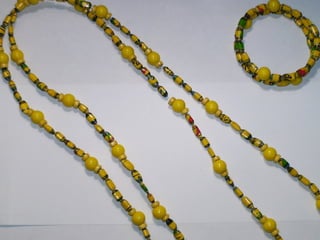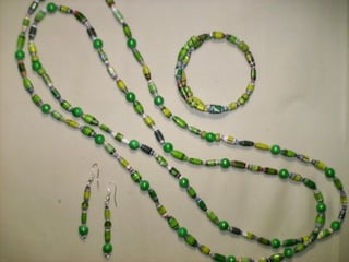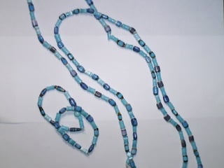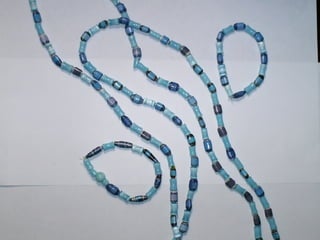 El documento presenta una oferta de collares artesanales hechos a base de papel por Sara Isaí. Los collares son resistentes al agua y se pueden personalizar con diferentes combinaciones de colores y estilos. Además de collares, Sara Isaí también ofrece accesorios opcionales como zarcillos y pulseras. Se proporcionan los datos de contacto de Sara Isaí para obtener más detalles.