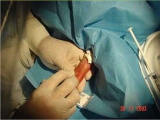 Este documento describe un catéter venoso central de inserción periférica (CCIP), el cual permite la introducción de un catéter de silastic a través de la punción directa de una vena para permitir el acceso vascular central. El CCIP ofrece una vía endovenosa confiable y duradera con menos riesgos de infección e innecesidad de canalización quirúrgica. El documento también describe indicaciones, personal responsable, complicaciones potenciales, ventajas y el procedimiento para la colocación de un CCIP.