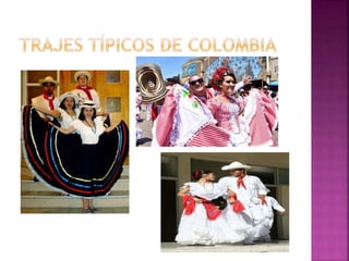El documento lista los colores de la bandera de Colombia y algunos de sus departamentos y presidentes. También menciona que el cóndor es el ave patriota de Colombia y que el escudo es el emblema de la república. Además, señala que Bogotá es la capital y segunda ciudad más grande de Sudamérica.