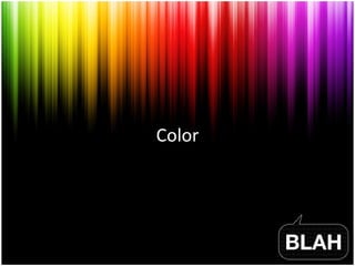Este documento breve describe algunas características clave de los colores, incluyendo la distinción entre tonos fríos y cálidos, saturados y desaturados, y el contraste provocado por el uso de colores complementarios.
