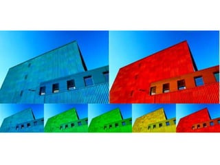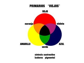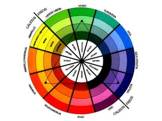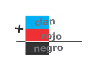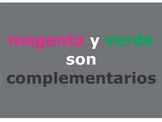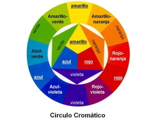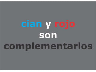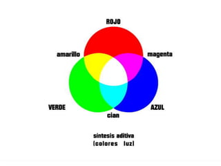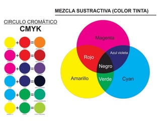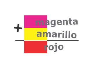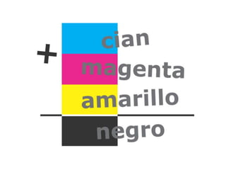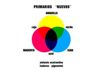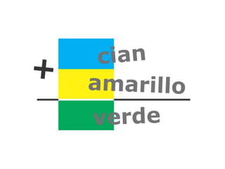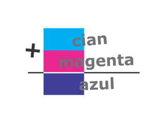 El documento describe los colores cian, magenta, amarillo, azul y rojo-verde. Menciona los nombres de cinco colores y la palabra "variables del color".