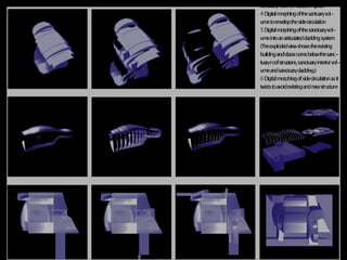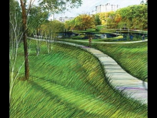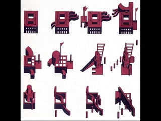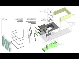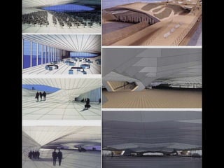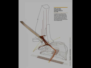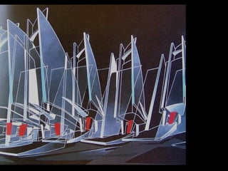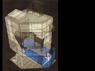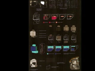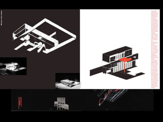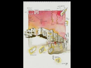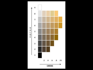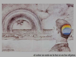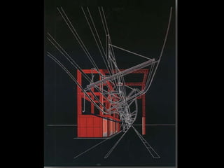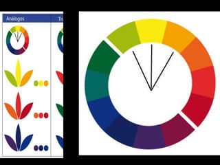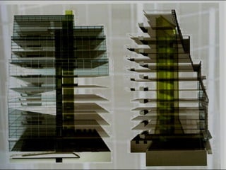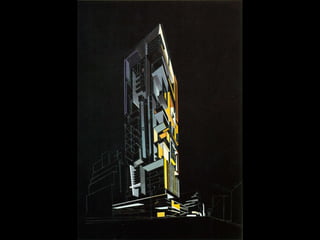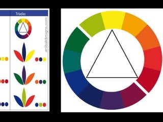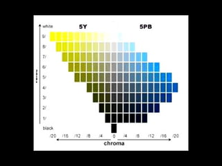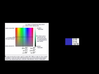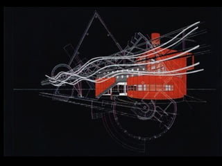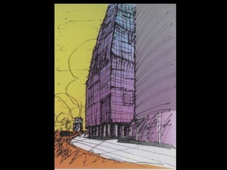El documento habla sobre las funciones del color en la gráfica. Explica que el color puede hacer la información más legible, llamar la atención, jerarquizar, agrupar y desagrupar elementos, identificar cosas y persuadir. Luego describe diferentes tipos de colores, mezclas, variables del color y esquemas de color como el monocromático y el de opuestos divididos. Finalmente, incluye varios ejemplos de obras arquitectónicas coloreadas.