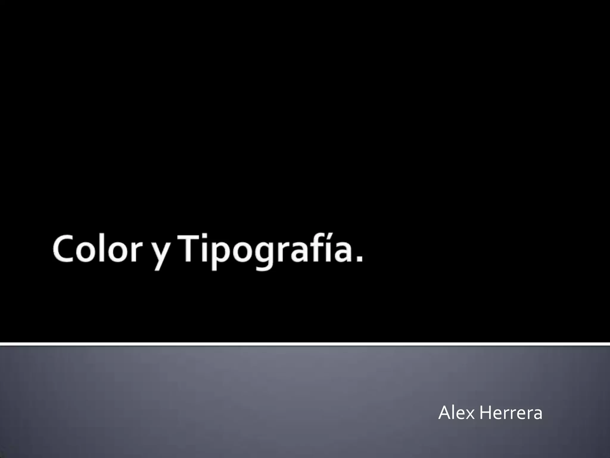 El documento habla sobre los colores, su composición y su significado psicológico. Explica que los colores se componen de luz u pigmentos y que cada uno transmite sensaciones diferentes. Luego describe el significado y efectos de colores específicos como el rojo, naranja, amarillo, verde, azul y negro. Finalmente, menciona diferentes tipos de tipografía como las decoradas, rotuladas, palo seco y romanas.