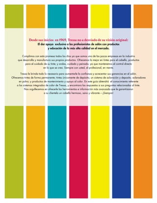 Este documento explica los fundamentos del tinte para el cabello. Describe la estructura del cabello, incluyendo la cutícula, corteza y medula, y cómo estas afectan la aplicación del tinte. También describe las propiedades físicas del cabello como textura, densidad, elasticidad y porosidad y cómo esto influye en el proceso de tinte. Finalmente, define los diferentes tipos de tintes disponibles como tintes permanentes, semi-permanentes, de depósito y decolorantes.