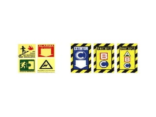 El documento describe los colores y formas geométricas utilizados en las señales de seguridad y su significado. Explica que el rojo se usa para señales de peligro, prohibición y evacuación, el amarillo para advertencia y precaución, el verde para obligaciones y el azul para información. También detalla que el círculo significa prohibición, el triángulo advertencia, el cuadrado seguridad contra incendios y rutas de escape y el rectángulo información y equipos de seguridad.