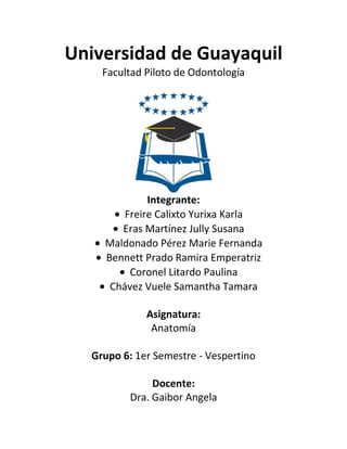 El documento describe la columna vertebral y sus características. La columna vertebral está formada por 33-34 vértebras que se dividen en 7 cervicales, 12 dorsales, 5 lumbares y 9-10 sacras/coccígeas. Todas las vértebras comparten ciertos elementos como el cuerpo vertebral, agujero vertebral, apófisis espinosa y transversas, y apófisis articulares. Algunas vértebras tienen características especiales como la primera y segunda cervical. El documento proporciona detalles adicional