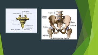 La columna vertebral está compuesta de 33 a 34 vértebras superpuestas que forman cuatro regiones: cervical, torácica, lumbar y sacra. Tiene funciones mecánicas como mantener el peso del cuerpo y funciones neurológicas como proteger la médula espinal. Las vértebras cervicales son pequeñas y móviles, mientras que las torácicas se unen a las costillas. Las lumbares son sólidas pero móviles. La región sacra termina en el cóccix. Algunas enfermedades com