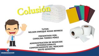 El documento describe la colusión, que es un acuerdo secreto entre competidores para limitar la competencia fijando precios, cuotas de mercado u otras condiciones comerciales. Explica que la colusión es ilegal y engañosa, y que ocurre con más frecuencia cuando hay pocos competidores y barreras a la entrada del mercado. También detalla cómo se castiga la colusión en Colombia y resume tres casos importantes de cárteles descubiertos en el país.