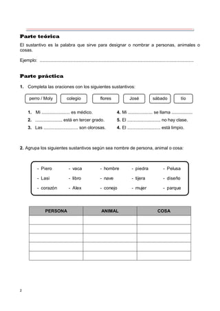 Este documento presenta información sobre las partes de la oración. Explica que una oración tiene dos partes principales: el sujeto y el predicado. El sujeto es la persona, animal u objeto de quien se habla y se identifica preguntando al verbo. El predicado es la acción o estado del sujeto y se expresa a través del verbo. Además, presenta ejemplos para ilustrar estas partes de la oración.