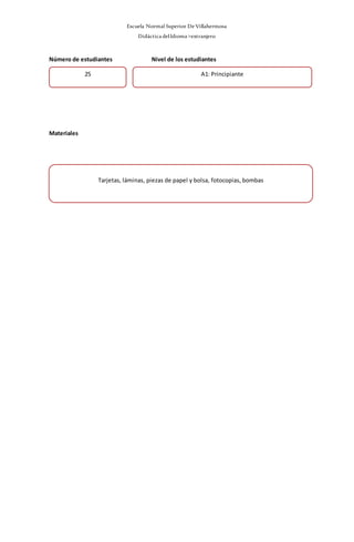 El documento presenta el plan de clase para una lección de inglés en una escuela primaria. La lección se enfoca en enseñar 10 comandos básicos en inglés a través de varias actividades interactivas como juegos, dinámicas y ejercicios prácticos. El plan incluye el objetivo, materiales, procedimientos detallados y una evaluación para los estudiantes.