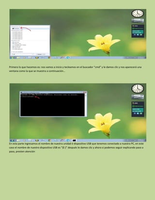 Este documento proporciona instrucciones paso a paso para utilizar varios comandos de MS-DOS, incluidos MKDIR, CD, TREE, RD, EDIT, RENAME y COPY. Explica cómo crear, modificar y eliminar carpetas y archivos, así como navegar entre carpetas y ver el contenido de los archivos. El tutorial tiene la intención de enseñar los fundamentos básicos de los comandos de MS-DOS para la administración de archivos y directorios.