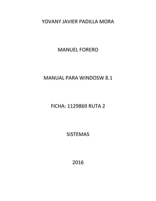 Este documento proporciona una lista detallada de atajos de teclado para Windows 8.1. Explica los atajos para realizar tareas comunes como copiar y pegar, minimizar ventanas, cambiar entre aplicaciones abiertas, y más. Además, incluye atajos para caracteres especiales y acentos utilizando la tecla Alt y un número.