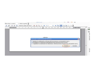 El documento proporciona instrucciones para combinar correspondencia y controlar el telemarketing y la correspondencia, incluyendo números de control y direcciones de correo electrónico.