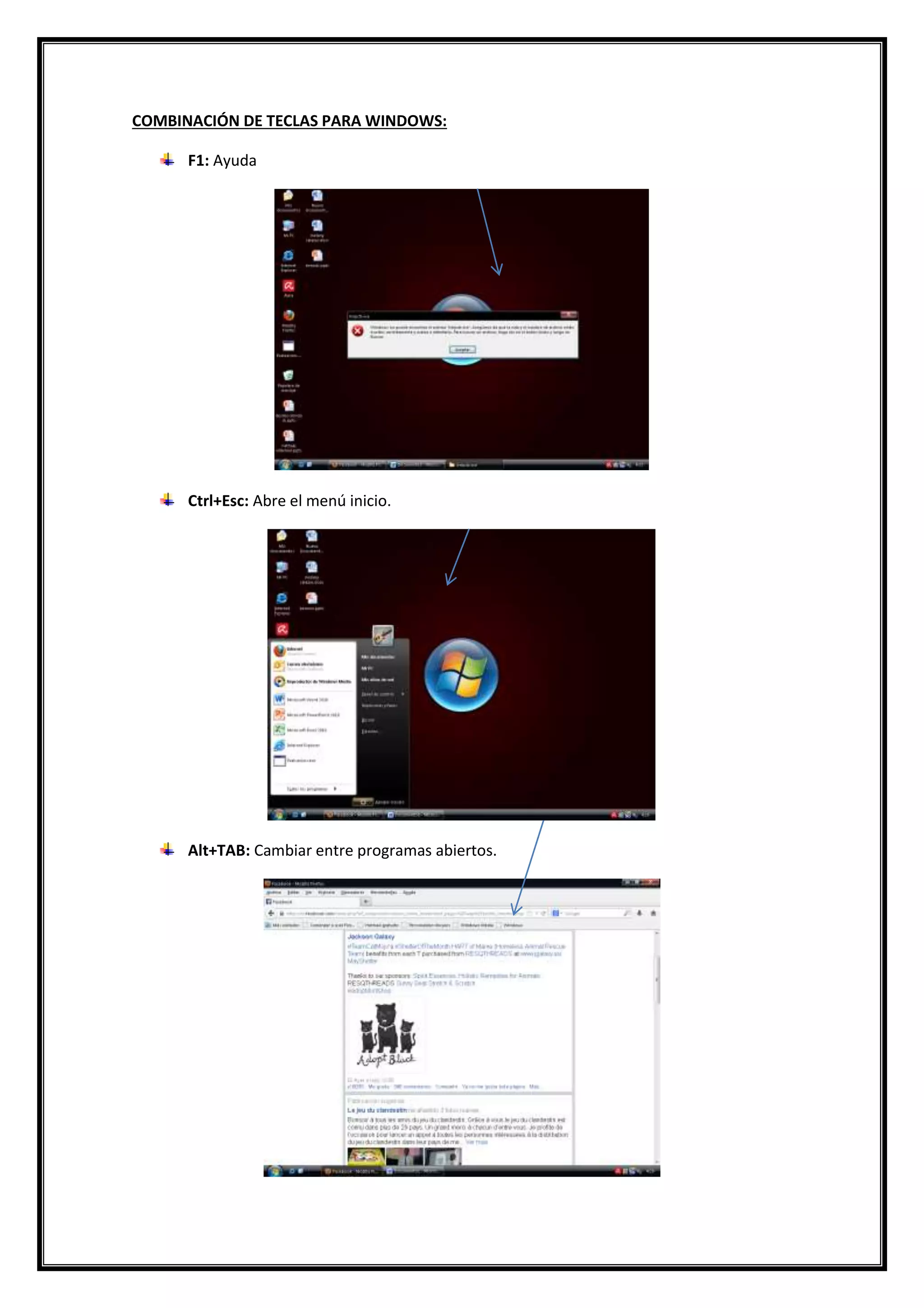Este documento lista combinaciones de teclas comunes para Windows y Office. Para Windows, incluye atajos para ayuda, menú inicio, cambiar entre programas y bloquear el equipo. Para Office, incluye atajos para copiar, pegar, seleccionar, imprimir, deshacer, negrita, subrayado y buscar. También proporciona una breve descripción de la Semana Santa.