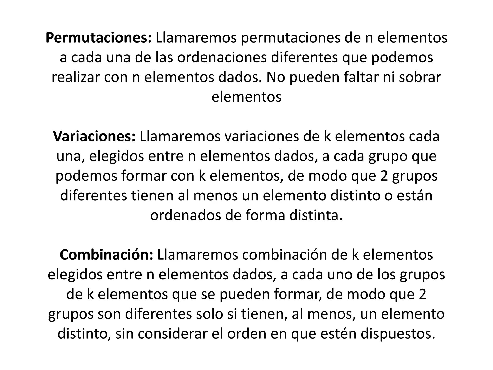 realizar con n elementos dados. No pueden faltar ni sobrar