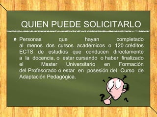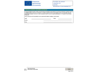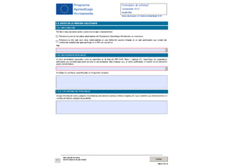 Este documento proporciona información sobre el programa Comenius. Comenius permite que las personas que hayan completado al menos dos cursos académicos o 120 créditos ECTS de estudios de enseñanza, o que estén cursando o hayan finalizado un Master de Formación del Profesorado, sean asistentes de docentes en centros educativos europeos. El documento también indica que Carlos, con 27 años y varias credenciales de enseñanza, quiere participar en Comenius para ganar experiencia profesional y conocer nuevos sistemas