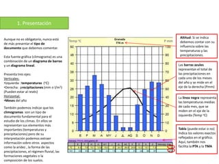 Este climograma corresponde a un clima mediterráneo de interior semiárido, con una precipitación total anual escasa de 474 mm y una amplitud térmica muy elevada de 19,1°C, que presenta cuatro meses áridos en verano. Se localiza probablemente en una zona del interior de Andalucía oriental, a una altitud de 774 msnm.