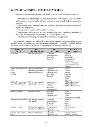 Este documento proporciona orientaciones para realizar un comentario de texto desde la perspectiva de la lingüística textual. Explica que un texto tiene carácter comunicativo y pragmático, y está estructurado. Define los tipos de texto, géneros textuales y ámbitos de uso. Señala que las propiedades fundamentales de un texto son la adecuación, coherencia y cohesión. Finalmente, ofrece pautas sobre cómo abordar estas cuestiones en un comentario de texto.