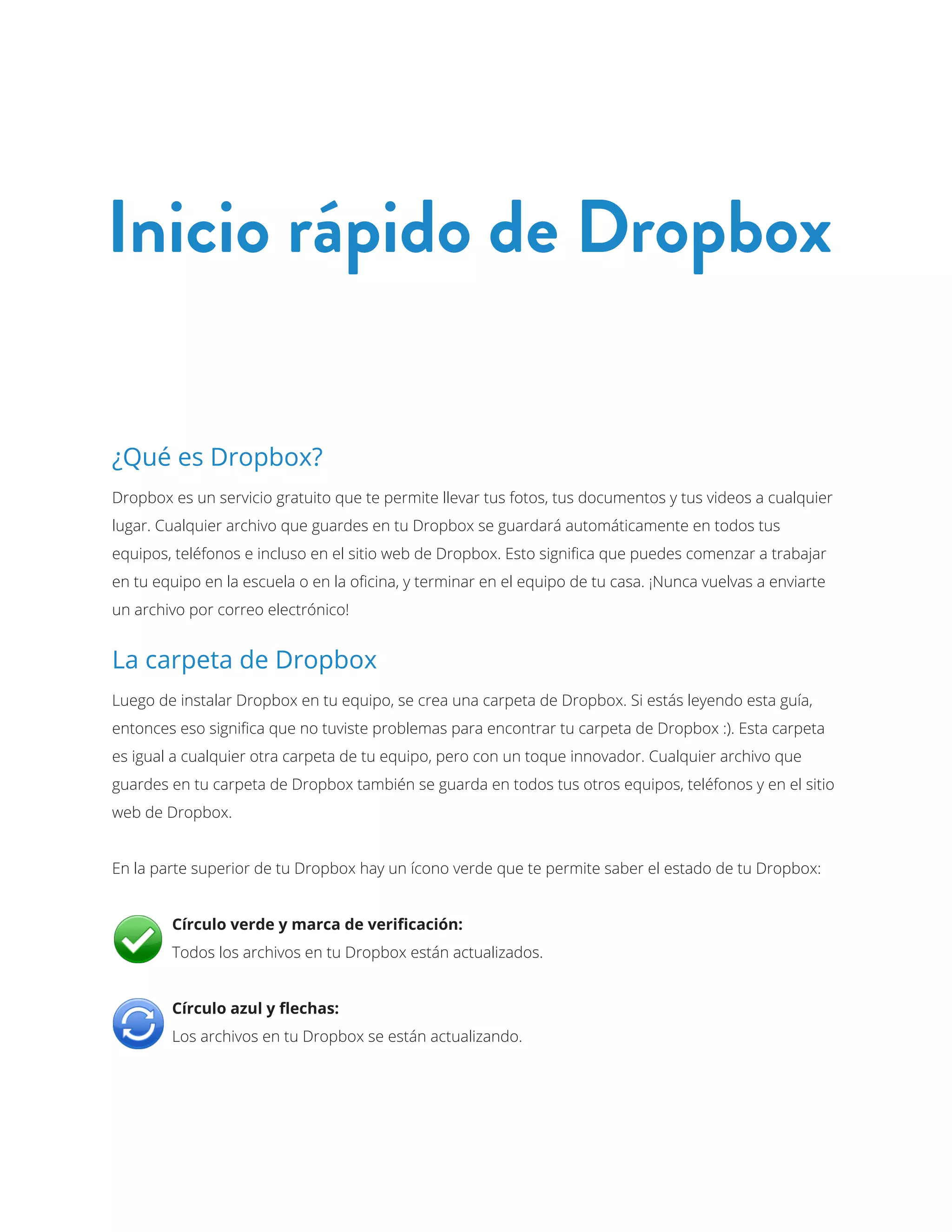 Dropbox es un servicio gratuito de almacenamiento en la nube que permite a los usuarios acceder y compartir fácilmente archivos entre dispositivos. Los usuarios instalan Dropbox en sus computadoras y teléfonos, y cualquier archivo agregado a la carpeta Dropbox se sincroniza automáticamente entre todos sus dispositivos y en la web. Esto permite a los usuarios acceder fácilmente a sus archivos desde cualquier lugar y continuar trabajando donde lo dejaron.