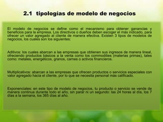 El documento describe los diferentes aspectos involucrados en el comercio electrónico. Explica los tres tipos de modelos de negocios, la infraestructura requerida incluyendo medios de comunicación, pagos y logística. También cubre el software, hardware, seguridad y diseño de sitios web necesarios para operar un negocio en línea de manera exitosa.