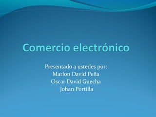 El documento define el comercio electrónico como la compra y venta de productos o servicios a través de medios electrónicos como Internet. Explica que el comercio electrónico comenzó en la década de 1970 con aplicaciones como la transferencia de fondos, y se expandió rápidamente en la década de 1990 con el advenimiento de Internet. También describe algunas ventajas clave del comercio electrónico como mejoras en la distribución, comunicaciones comerciales electrónicas y beneficios operacionales.