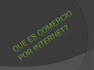 El documento habla sobre el comercio electrónico. Explica que consiste en la compra y venta de productos o servicios a través de medios electrónicos como Internet. Describe las diferentes clasificaciones del comercio electrónico incluyendo entre empresas, empresas y consumidores, y entre consumidores. También discute ventajas como encontrar productos a menor costo y desventajas como la falta de capacidad de ver el producto físicamente.