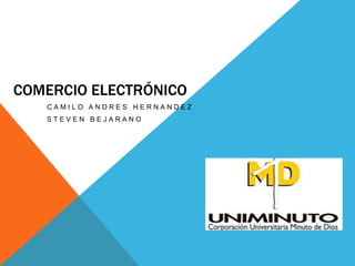Este documento trata sobre el comercio electrónico. Explica que el comercio electrónico es una metodología moderna para hacer negocios que busca reducir costos y mejorar la calidad de bienes y servicios. También describe brevemente la historia del comercio electrónico, sus ventajas y desventajas para empresas y clientes, los diferentes tipos de comercio electrónico (B2B, B2C, C2C, G2C), y conceptos relacionados como la Web 3.0.