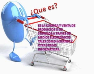 Este documento describe los beneficios del comercio electrónico para las empresas, incluyendo mejoras en la distribución, comunicación industrial vía electrónica, y beneficios operacionales. También discute las características del comercio electrónico como su ubicuidad, alcance global, riqueza de información e interactividad. Finalmente, señala que el comercio electrónico puede utilizarse para intercambiar documentos entre empresas en una variedad de industrias.