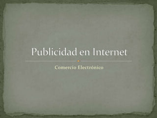 La publicidad en Internet se realiza principalmente a través de páginas web y contiene elementos como texto, enlaces, banners, videos y animaciones. Los principales formatos son banners estáticos, banners animados, banners rotativos, páginas web, blogs y portales web. Existen diferentes modelos de precios como CPM (costo por mil impresiones) y CPC (costo por clic).