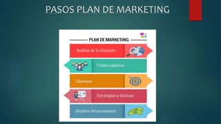 El documento presenta un plan de marketing para una tienda de comercio electrónico. Detalla el uso de posicionamiento SEO, la creación de una página web con catálogo, métodos de pago como tarjetas de crédito y transferencias bancarias, protección de datos personales, cifrado seguro para transacciones, y un diseño accesible e inclusivo. El plan fue realizado por Carlos Arellano Campa y José Ma González Martín de la clase 2 ACO A.