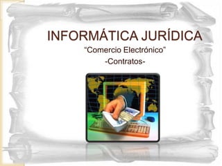 El documento habla sobre el comercio electrónico y los problemas jurídicos que surgen del mismo. Algunos de los principales problemas jurídicos son la validez de las transacciones electrónicas, la prueba de los contratos celebrados electrónicamente y la delimitación de responsabilidades. El derecho peruano debería regular de manera específica el comercio electrónico para dar certeza jurídica a este tipo de transacciones.