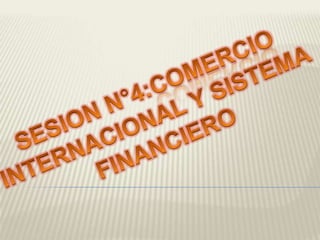 Este documento resume conceptos clave sobre el comercio internacional y el sistema financiero. Explica que el comercio internacional implica el intercambio de bienes y servicios entre naciones basado en la ventaja comparativa y la oferta y demanda. También define a la OMC como la organización que establece las normas del comercio global. Finalmente, identifica causas, ventajas y barreras al comercio internacional, como aranceles y tramites aduaneros.