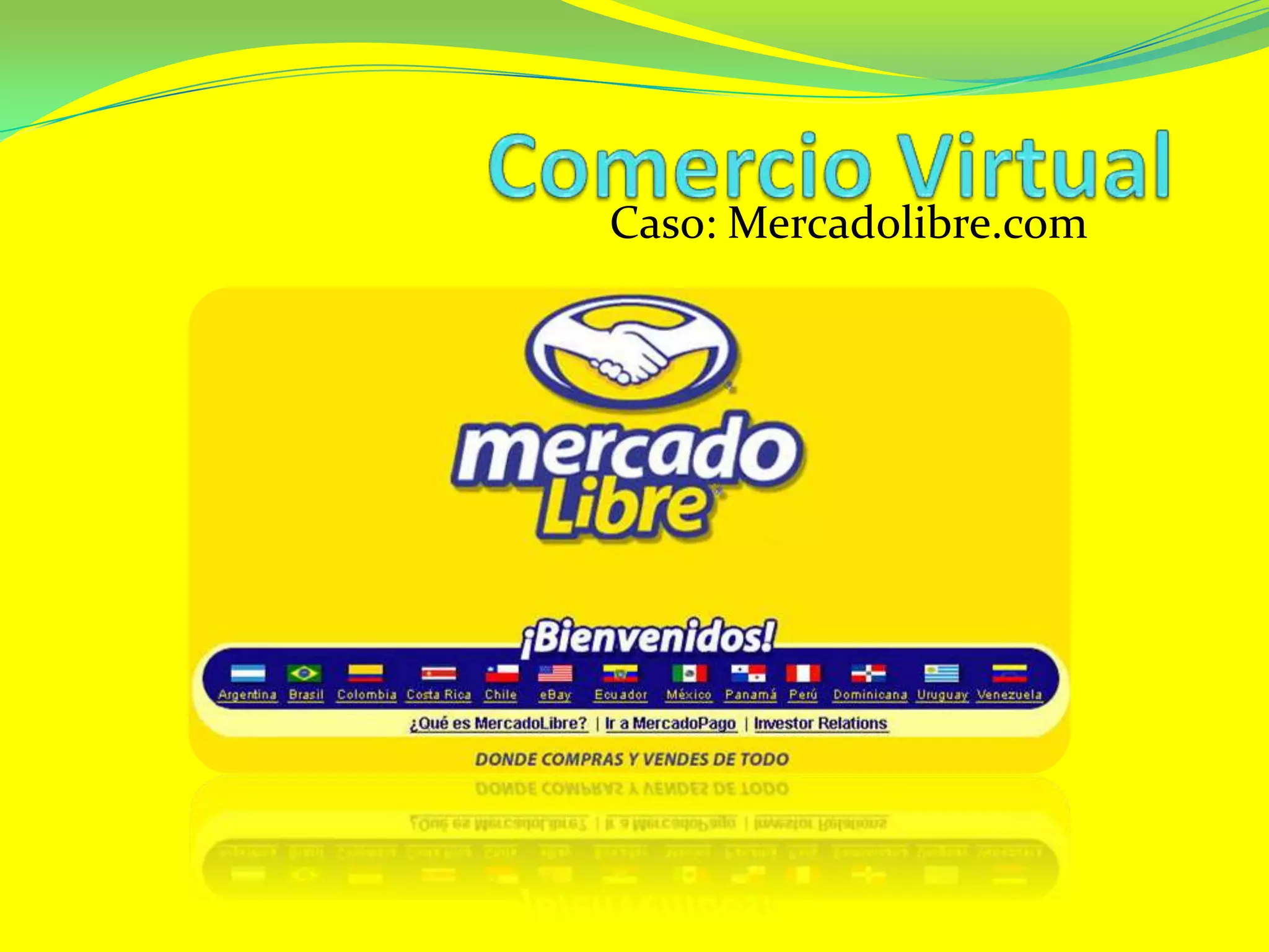 Mercadolibre.com permite a vendedores distribuir artículos propios o de terceros nuevos o usados, identificando necesidades de mercado y compitiendo con precios o innovación, aprovechando el comercio virtual a través de Internet para transferir o iniciar negocios de forma similar al comercio real.