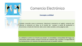 1. Zappos es una empresa de comercio electrónico especializada en la venta de calzado y prendas de vestir. 2. Amazon comenzó como una librería en línea y hoy es la compañía de comercio electrónico más grande del mundo que realiza envíos a todo el mundo. 3. Alibaba es la segunda compañía china más grande del mundo en términos de facturación y ofrece portales web, servicios de pago electrónico y computación en la nube.
