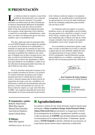 Este cómic presenta la historia de Iratxe, una adolescente que está en una relación de pareja abusiva con su novio Iker. Iker controla a Iratxe, le grita y la intimida. Cuando Iratxe habla con su enfermera sobre métodos anticonceptivos, la enfermera se da cuenta de la situación de abuso y le ofrece ayuda y asesoramiento. Más tarde, en una fiesta, Iker se enfada con Iratxe por su ropa y la abandona allí. Iratxe finalmente se da cuenta de que la relación es