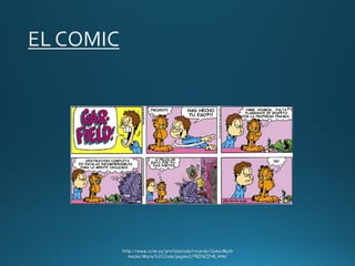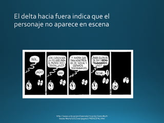 El documento describe diferentes tipos de ángulos y planos utilizados en la filmación cinematográfica, así como algunas onomatopeyas y emojis. Se menciona a Garfield y una historia sobre vikingos rodeados por enemigos.