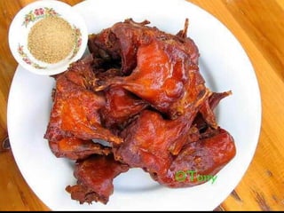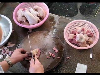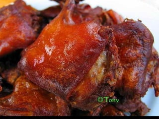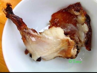 El documento presenta fotografías tomadas en un restaurante chino en Culiacán, Sinaloa. Se recomienda a los comensales no consumir pollo agridulce, carnes u otros alimentos que se vean extraños, y en su lugar optar por verduras. Las imágenes muestran la preparación y decoración de los platillos antes de ser servidos. Se desea a los clientes un buen provecho.