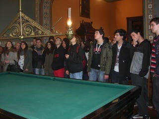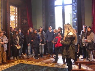 El documento resume una excursión histórica a Comillas, España que incluyó visitas al palacio de Sobrellano, el panteón de los marqueses, mobiliario diseñado por Gaudí, la colegiata de Santa Juliana con capiteles románicos y escudos, y el palacio Velarde. También menciona una visita a la neocueva de Altamira que contiene pinturas paleolíticas. La próxima excursión será a Oviedo, Viñón y Gijón para explorar el pasado de la escuela ast