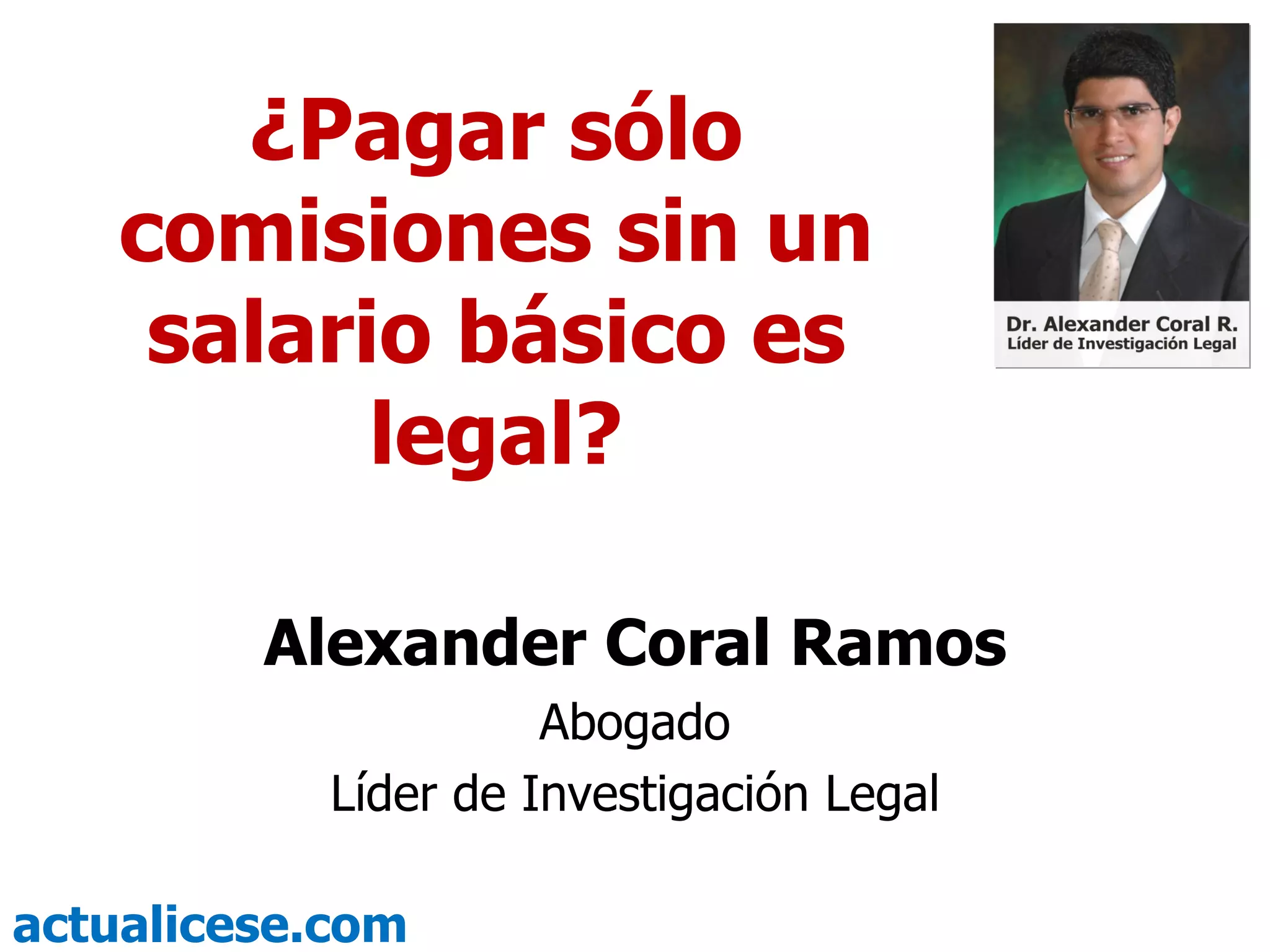 Pagar a un empleado solo con comisiones sin un salario básico es legal según la ley laboral colombiana. Los contratos donde el único pago son comisiones se consideran contratos laborales aleatorios. Para el cálculo de prestaciones sociales como cesantías, primas y vacaciones, así como las cotizaciones a la seguridad social, se toma el promedio mensual recibido en comisiones, el cual no puede ser inferior a un salario mínimo legal mensual.