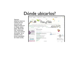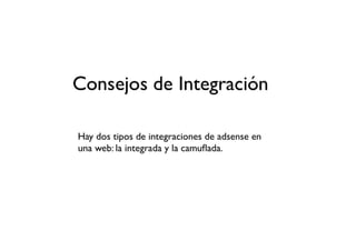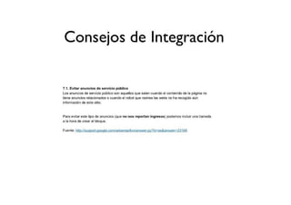 El documento describe varias alternativas a Adsense para monetizar un sitio web, incluyendo Simply, Smowtion y AdDynamo que ofrecen banners similares a Adsense con pagos mínimos de €50, $100 y €20/$ respectivamente. También menciona InfoLinks e InTextual que permiten añadir enlaces al texto con pagos mínimos de $50 y $80 a través de PayPal.